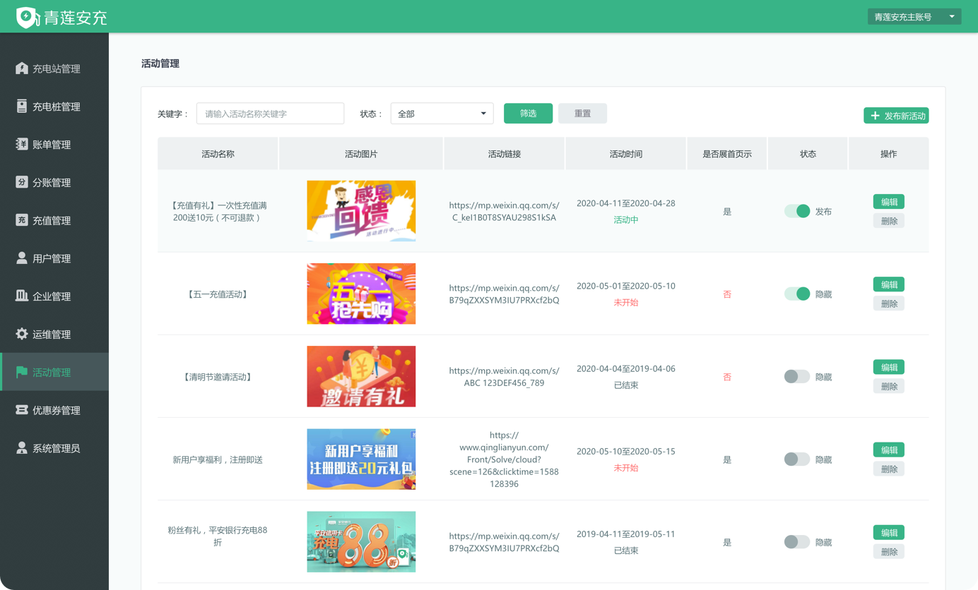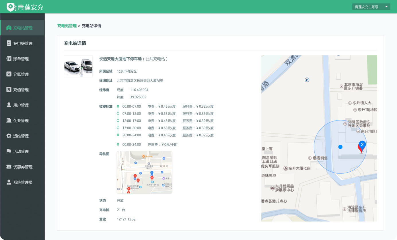 提供充电桩资产数据管理、电桩在线监控、设备故障管理、告警配置管理等。